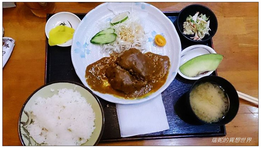 等了一會,餐點一一上桌,我和老公點的都是定食,這是我的咖哩漢堡定食。