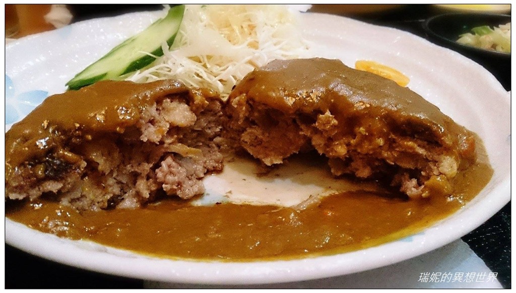 漢堡排的口感相當彈牙美味,搭配濃郁的咖哩醬相當好吃,忍不住扒了一口又一口的白飯。旁邊的高麗菜絲切得相當細,淋上了日式醬汁,吃起來相當清爽,竟有種解膩的清新感。